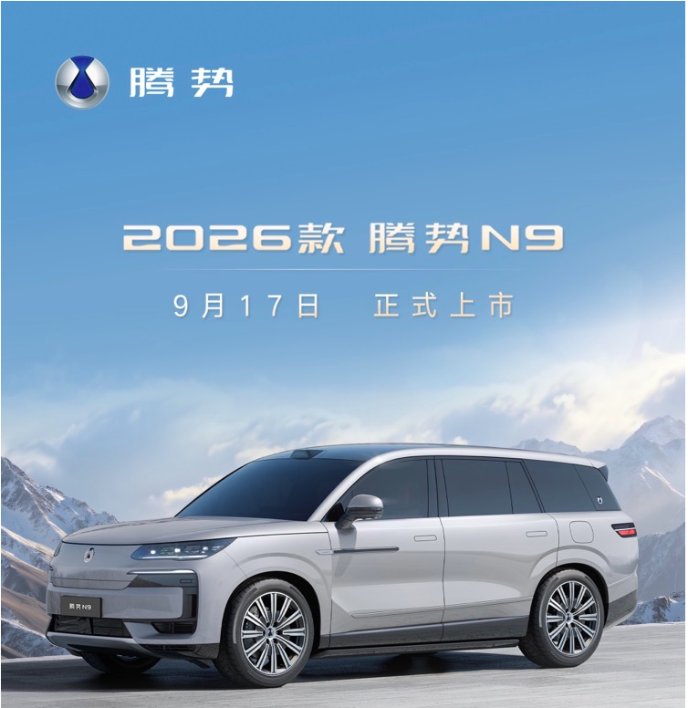 9月14日,腾势汽车微信公众号称,2026款腾势N9将在9月17日上市。据了解,新车增加紫瑢金和红雅金涂装的双拼色车身设计,搭载的混动系统最大综合续航可达1302km。
