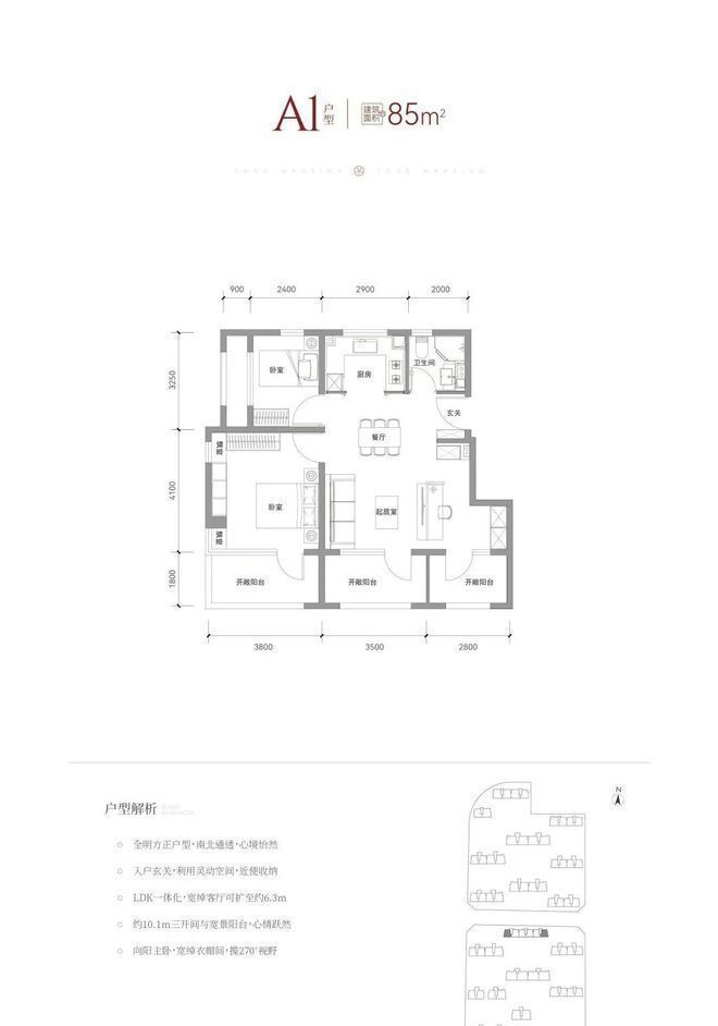 105㎡户型分为三居和四居两种选择,三居偏改善,四居适合家庭人口较多的购房者。
